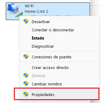 • Haz clic derecho en tu conexión de red (WiFi o Ethernet)